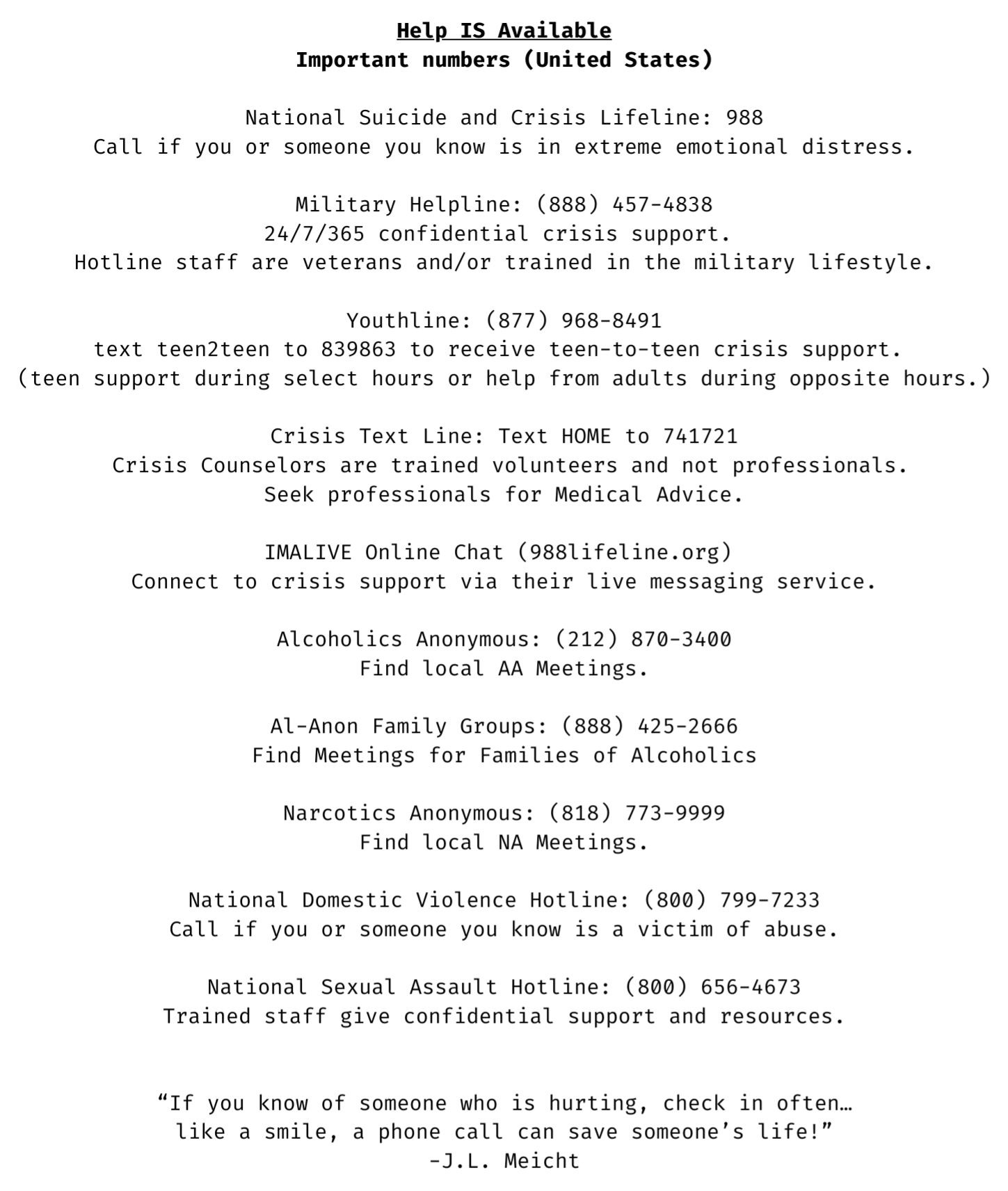 Mental Health Emergency Numbers
